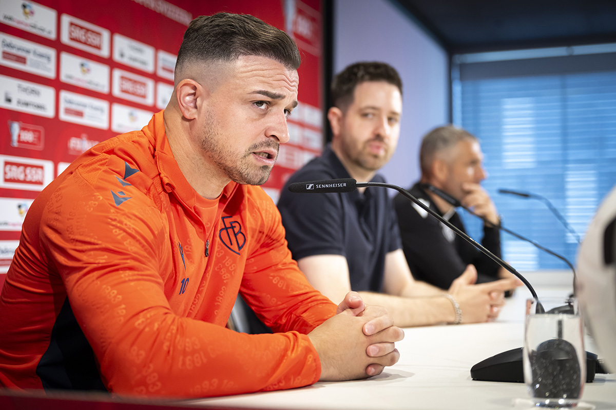 Im 100. Final des Schweizer Cups trifft der FC Basel am Sonntag ab 14 Uhr auf den FC Biel. Gegen den Drittligist ist der FCB haushoher Favorit. Gelassen aber auch gut vorbereitet geben einen Tag vor dem Spiel Captain und Trainer Auskunft.